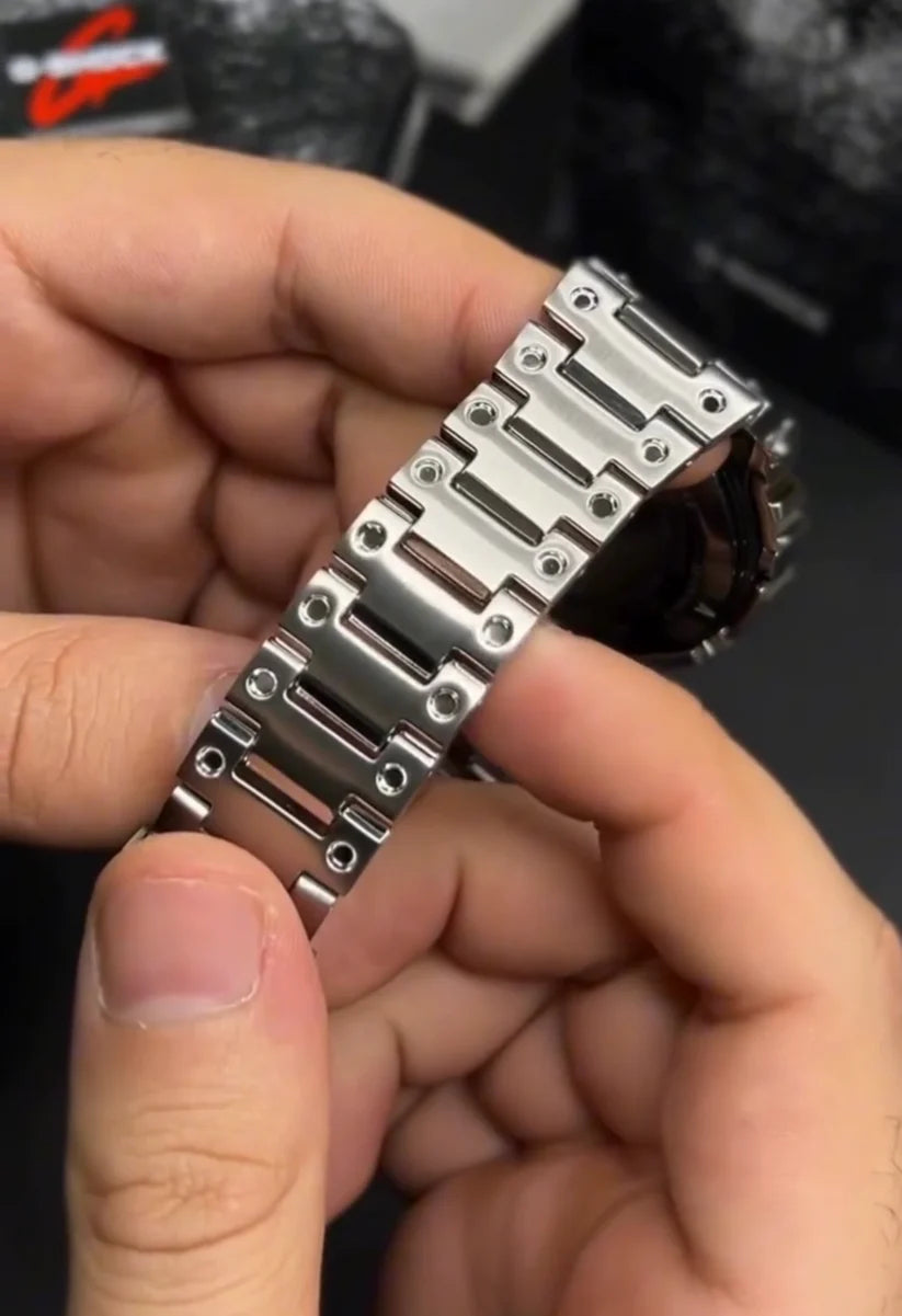 B5000D refers to a Full metal G_SHOCK Digital watch, specifically the GMW-B5000D series, which features a stainless steel construction with shock resistance, 200-meter water resistance, Tough Solar power, Bluetooth connectivity for smartphone linking, and radio-controlled timekeeping.These watches are a modern homage to the original G-SHOCK design, built with advanced engineering for enhanced durability and functionality, according to the CASIO website.